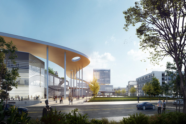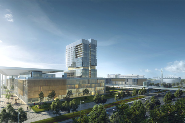 学院西校区作为功能相对健全完善的校区规划,黄河十四路至黄河十五路间科技示范园位置,现可用地64.19亩,已调整为商业开发用地,暂规划为专家公寓、单身教职工公寓和教职工活动中心。黄河十六路北老奶牛场位置28.46亩暂规划为国际学术交流中心。黄河十五路至十六路间,可利用土地330.79亩,为科教用地,规划为教学实训区、场馆区、学生生活区和运动区,总建筑面积约37万平方米,现代主义建筑风格。四大学院教学实训楼集教学、实训、科研、校企合作、社会服务一体化设计,教学实训区建设高架步行连廊贯通,东接渤海十一路过街天桥与主校区联通。图书馆综合楼后附楼设会务中心,初步规划为12层,为西校区核心建筑,楼前广场部分设地下停车场。
