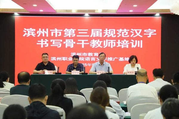9月18日,学校承办的滨州市第三届规范汉字书写骨干教师培训班在学校顺利开班。首都师范大学书法文化研究院博士后、淮阴师范学院教授、硕士研究生导师徐学标,市委教育工委副书记,市教育局党组副书记,市教育科学研究院党总支书记、院长杨宝剑,学校党委委员、组织人事部部长李超出席开班仪式。人文学院及学校语言文字工作负责同志参加活动。